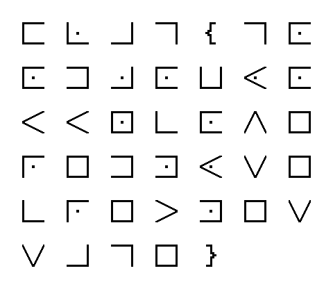 Με λίγο ψάξιμο αναγνωρίζουμε πως τα σύμβολα αυτά είναι ένα Pigpen Cipher, το οποίο έχει την ακόλουθη αντιστοίχιση: